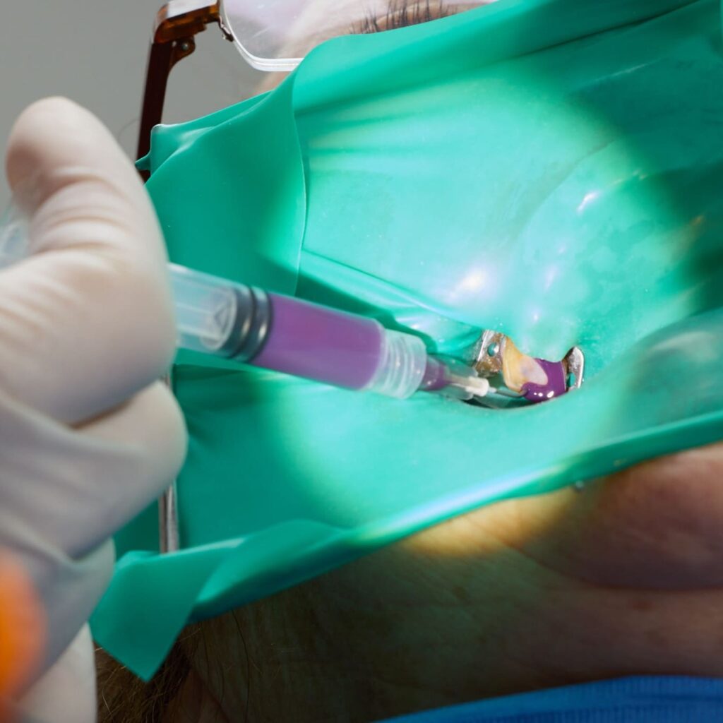 Le traitement endodontique, souvent appelé “dévitalisation”, consiste à retirer la pulpe infectée ou inflammée à l’intérieur de la dent, puis à désinfecter et obturer les canaux radiculaires. Cette intervention est indiquée lorsque la carie a atteint la pulpe, ou à la suite d’un traumatisme dentaire. Réalisé avec des instruments modernes et un contrôle visuel accru grâce au microscope opératoire, ce traitement permet de préserver la dent sur le long terme tout en éliminant la douleur et l’infection.
